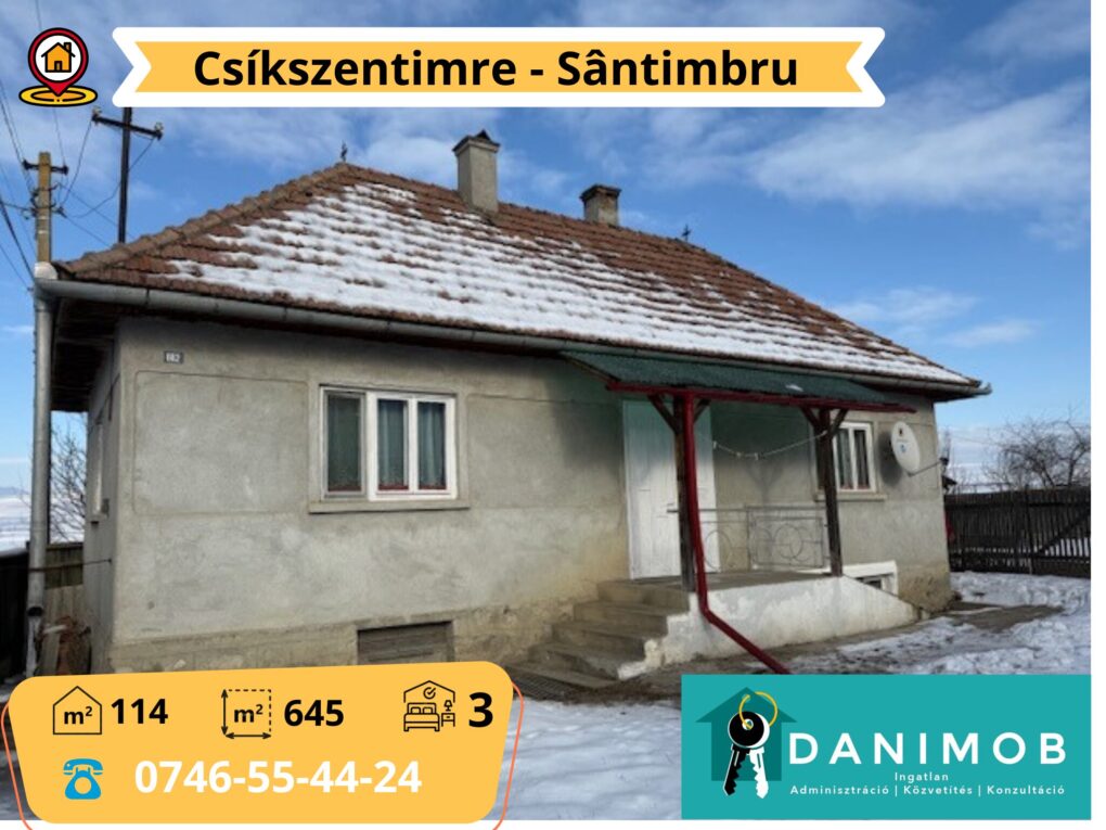 Eladó családi ház Csíkszentimrén! Csíkszentimre csendes, rendezett részén, egy zsákutcában eladó egy 114 m²-es habtéglából épült lakóház, amely kiváló lehetőség állandó otthonnak vagy vidéki pihenőháznak is. 🔹 Főbb jellemzők: • Lakóház összterülete: 114 m² • Földszinti lakótér: 69 m² • Pince lakás: 45 m² • 3 szoba • 1 fürdőszoba • Száraz kőpince – tárolásra vagy borospincének is ideális Közművek : hálózati víz, kanalizálás, villanyhálózat. Hiányző közmű : gáz (csatlakozási lehetőség a kapu elött) 🔹